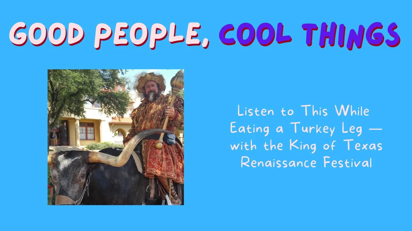 Presiding over it all is the King of the Texas Renaissance Festival, who just so happens to be this episode’s guest. Yes, we’re kicking off the new season of Good People, Cool Things in royal style!